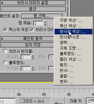 페인팅할 오브젝트 재질에서 맵 유형을 선택합니다. 버튼을 클릭하면 사용 가능한 맵 유형 리스트가 열립니다.