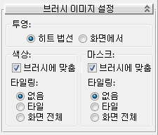 브러시 이미지(색상 또는 마스크)의 타일링 옵션을 선택합니다.