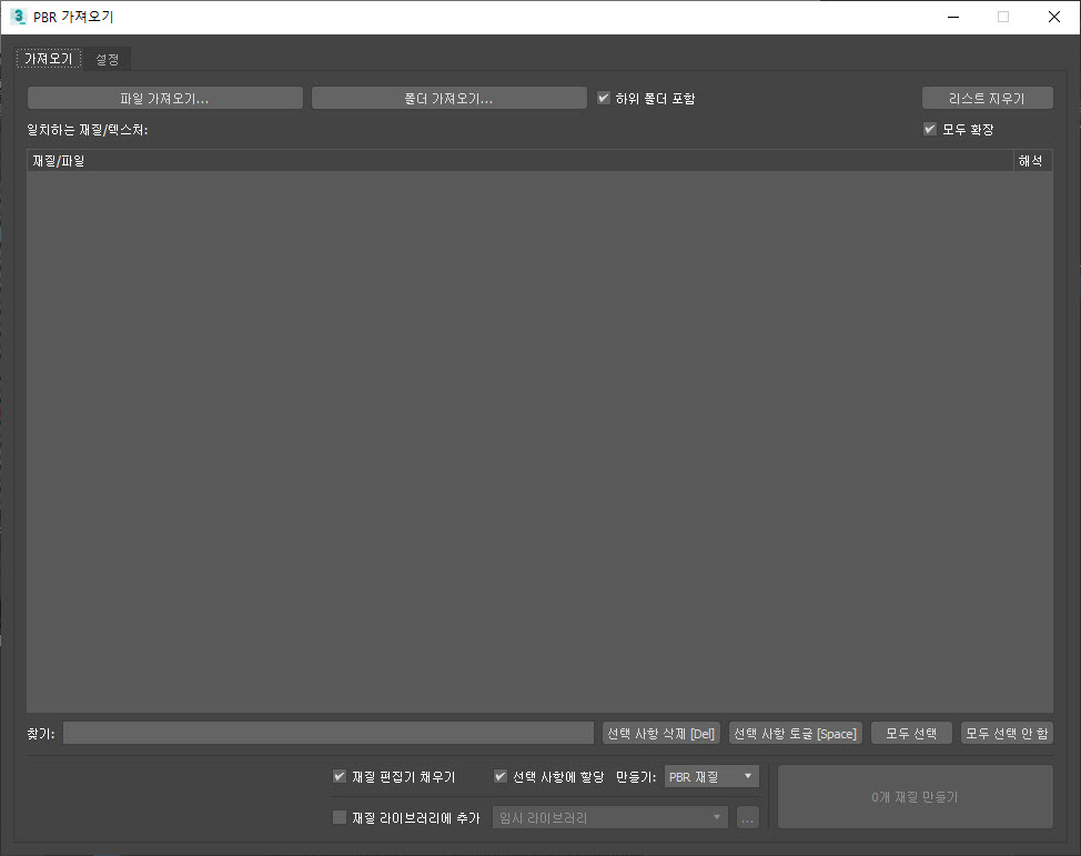 - 가져올 PBR 재질 파일이 포함된 폴더를 찾아 선택합니다.