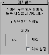 UVW 제거 유틸리티는 현재 선택된 오브젝트에서 매핑 좌표 또는 재질을 제거합니다.