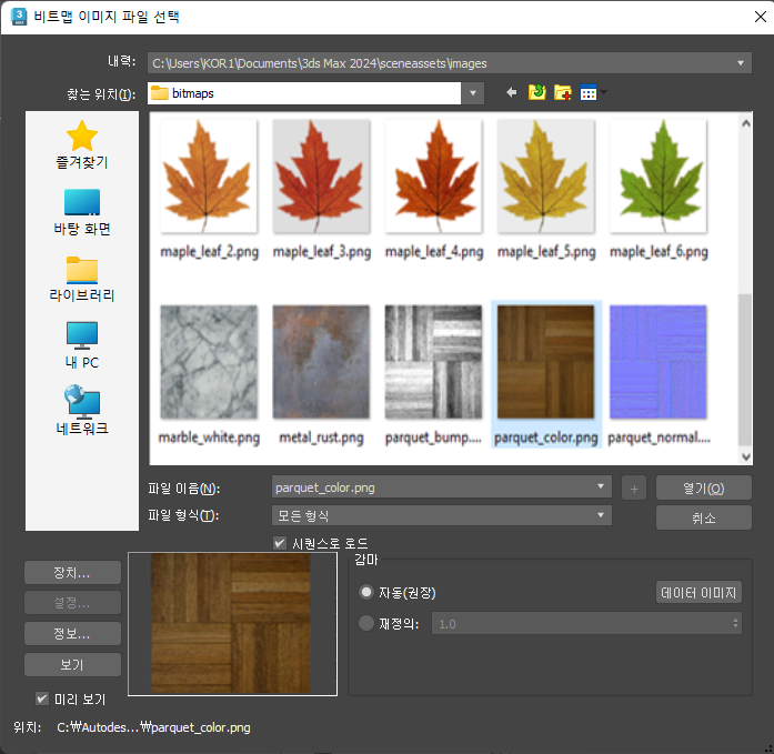 - 재질/맵 브라우저에서 비트맵을 두 번 클릭합니다.