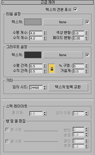 - 타일과 그라우트 간에 텍스처 맵 또는 색상을 바꿉니다.