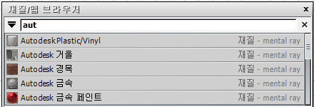 이 필드에 텍스트를 입력하여 이름이 입력한 문자로 시작되는 재질 및 맵을 검색합니다. 검색은 대/소문자를 구분하지 않습니다.