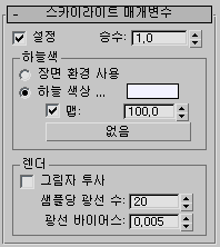 주: 렌더러가 Default Scanline으로 설정되지 않은 경우 또는 Light Tracer가 활성화된 경우 이 컨트롤은 비활성화됩니다.