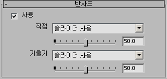 슬라이더 사용(기본값) 활성 상태인 경우 직접 반사도가 슬라이더에 의해 제어됩니다.