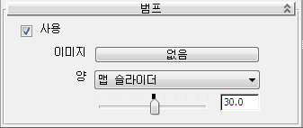 맵 사용활성 상태이면 슬라이더는 범프 맵 크기에 대한 맵을 선택하기 위해 클릭할 수 있는 맵 버튼으로 바뀝니다.