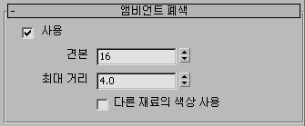 AO 사용 시, 모서리가 지나치게 어두운 "칙칙한" 모양이 되거나 자체 발광 오브젝트 주위에 어두운 테두리가 생기면 보다 정확한 결과를 위해 다른 재질의 색상 사용을 설정합니다.