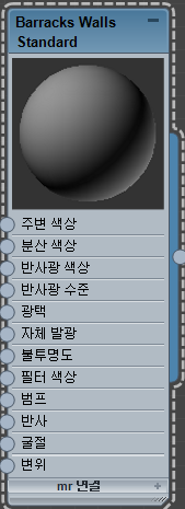 벽에 텍스처와 범프 맵이 모두 적용된 건물