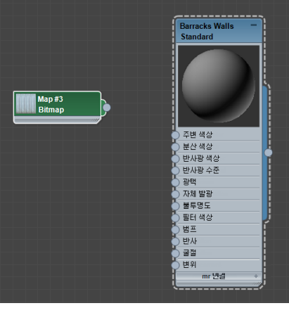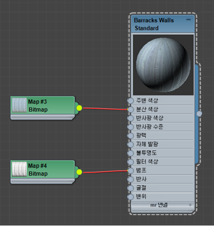 와이어를 분산 색상 입력 소켓에 드롭하면 해당 맵이 재질의 분산 색상 구성요소에 적용됩니다.
