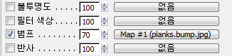 벽이 비바람에 더 바랜 것처럼 나타나도록 범프 양을 늘림