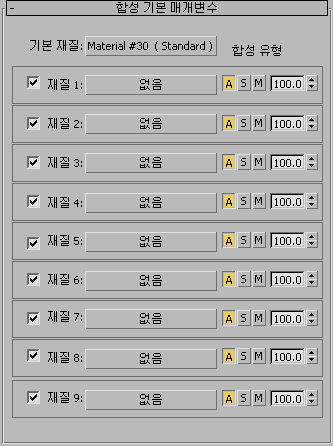 이 버튼은 재질의 합성 방법을 제어합니다. 기본값은 A입니다.