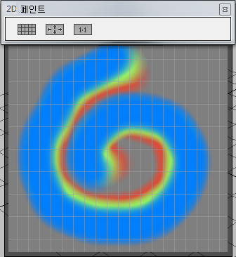 2D 보기에서는 뷰포트에 포개진 평평한 직사각형 2D 페인트 창에 맵을 페인팅할 수 있습니다.