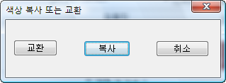 색상 견본을 드래그 앤 드롭하여 색상을 복사하면 색상 복사 또는 교환 대화상자가 표시됩니다. 색상을 복사하거나 색상을 바꾸는 옵션을 교대로 제공합니다.