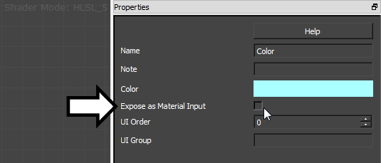 ShaderFX 편집기가 열리면 노드를 선택한 다음 특성 패널에서 재질 입력으로 노출을 클릭합니다. ShaderFX 편집기를 닫을 때 노드 속성을 매개변수 롤아웃에서 사용할 수 있습니다. 이제 이 속성을 조정할 수 있으며 뷰포트에서 실시간으로 업데이트되는 것을 볼 수 있습니다.