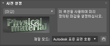사용자화된 재질 생성을 위한 시작점으로 사전 설정(템플릿)을 사용할 수도 있습니다. 오른쪽 창에 나타나는 일반적인 지침을 사용하여 드롭다운 리스트 및 설명에서 템플릿을 선택합니다.
