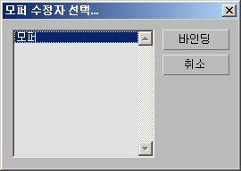 - 모퍼 수정자 선택 대화상자 리스트에서 모퍼를 클릭하여 해당 수정자를 강조 표시한 다음 바인딩을 클릭합니다.