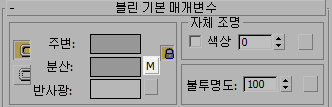 반사광 수준, 광택, 자체 발광 및 불투명도와 같은 스칼라 구성요소에 맵을 할당하면 기본 매개변수 롤아웃의 구성요소 값이 맵 롤아웃의 관련 맵 크기와 혼합됩니다.