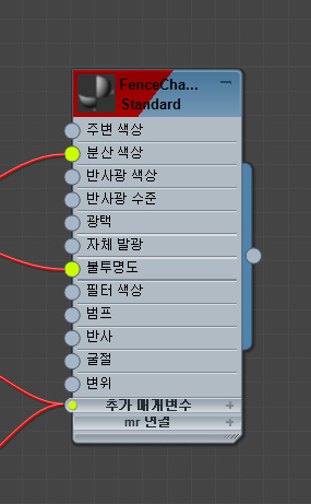 셰이더 기본 매개변수 그룹의 리스트가 열려 있는 동일한 노드