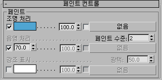 첫 번째 숫자 설정은 오브젝트의 조명 처리되지 않은 측면에 나타나는 조명 처리 색상의 백분율입니다. 기본값은 70.0입니다.