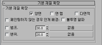 설정하면 범프 맵을 활성화합니다. 숫자 설정을 사용하여 범프 양 및 범프 맵을 할당하는 맵 버튼을 제어합니다.
