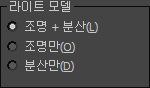 이 그룹의 옵션은 정점 색상에서 그림자, 텍스처 맵 혹은 라디오시티 솔루션을 포함할지 선택하도록 합니다.