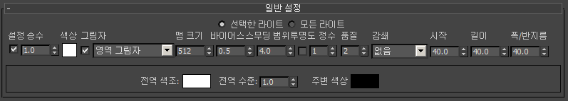 - 선택한 라이트선택하면 일반 설정이 선택한 라이트에만 영향을 줍니다.