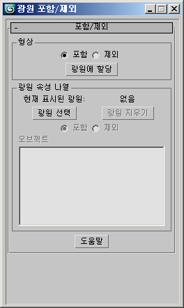 - 현재 표시된 라이트의 포함 또는 제외를 위해 선택된 오브젝트를 나열합니다.