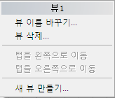 명명된 뷰 탭의 오른쪽에 있는 빈 영역을 마우스 오른쪽 버튼으로 클릭하면 팝업 메뉴에 새 뷰 만들기라는 단일 선택 항목만 표시됩니다.