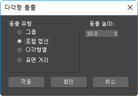 캐디 컨트롤 사용이 해제되어 있는 경우 편집 가능한 폴리 설정에서 표준 대화상자를 사용합니다.