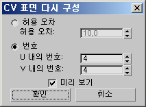 CV 표면에 대한 다시 구성 버튼을 누르면 이 대화상자가 열립니다. 이 대화상자에서는 표면을 다시 제작하는 방법을 지정할 수 있습니다. 표면을 다시 제작하면 모양이 변경될 수 있습니다.