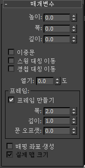 이 그룹에는 문-잼 프레임용 컨트롤이 있습니다. 문 오브젝트의 일부이기는 하나 이 프레임은 벽의 일부인 것처럼 작동합니다. 문을 열거나 닫아도 이동하지 않습니다.