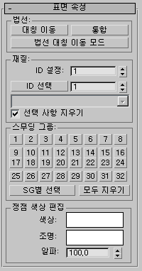 이러한 컨트롤을 통해 패치 법선, 재질 ID, 스무딩 그룹 및 정점 색상 작업이 가능합니다.