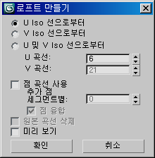 표면 하위 오브젝트를 종속된 U 로프트 또는 UV 로프트 표면으로 변환하기 위한 로프트 만들기 대화상자를 표시합니다. U 로프트 표면을 만들 때 사용되는 치수도 변경할 수 있습니다.