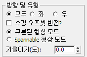 프로필 방향 및 유형 그룹(위 참조)에서 왼쪽이나 오른쪽을 선택한 경우에는 사용할 수 없습니다.