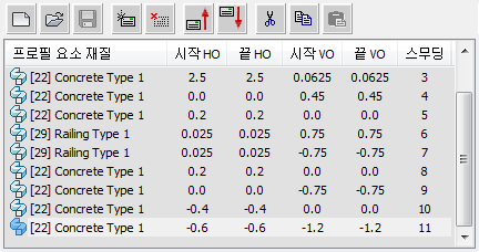 현재 스윕 오브젝트 스타일의 내용을 나열합니다. 각 라인의 리스트에는 개별 요소가 표시됩니다. 요소를 강조 표시하면 편집기의 나머지 컨트롤에 대한 세부 사항이 표시됩니다.