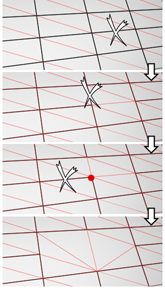 이것이 대각선 위치를 변경하기 위해 두 정점을 클릭해야 하는 삼각 측량 편집 도구와 비교가 되는 점입니다.
