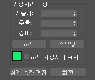 가장자리 선택(위), 부드러운 모양(가운데), 선 모양(아래)