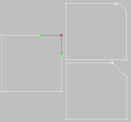 예를 들어 직사각형의 한 모서리를 모깎기하는 경우 단일 모서리 정점이 모서리에 이르는 두 세그먼트를 따라 이동하는 두 개의 정점으로 바뀌고 해당 모서리에 새로운 둥근 세그먼트가 만들어집니다.