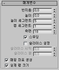 매핑된 재질을 원통에 적용하기 위한 좌표를 생성합니다. 기본적으로 설정되어 있습니다.