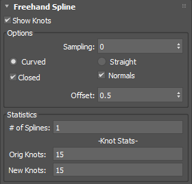 - 활성화된 경우 마우스 버튼을 놓으면 자유형 스플라인을 생성합니다. 비활성화된 경우 마우스 버튼을 다시 누르면 모양이 계속되어 스플라인의 열린 끝을 자동으로 연결합니다. 그리기를 마치려면 뷰포트에서 Esc 키 또는 마우스 오른쪽 버튼을 클릭해야 합니다.