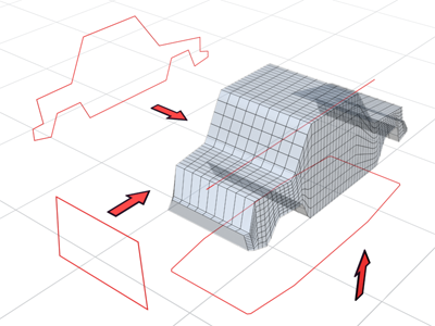 맞춤 변형을 통해 두 맞춤 곡선을 사용하여 오브젝트의 상위 및 측면 모양을 정의할 수 있습니다. 모양을 그려 로프트 오브젝트를 생성할 경우 맞춤 변형을 사용합니다.