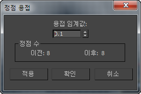 이 캐디를 사용하여 정점 및 가장자리에 대한 용접 임계값을 설정하고 용접할 하위 오브젝트 수를 미리 봅니다.