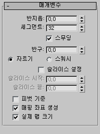 매핑된 재질을 구에 적용하기 위한 좌표를 생성합니다. 기본적으로 설정되어 있습니다.