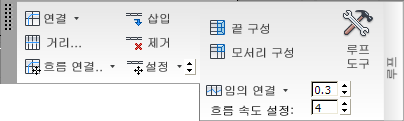 오른쪽: 흐름 연결 적용 후(루프를 만든 후 연결된 모양 표시)