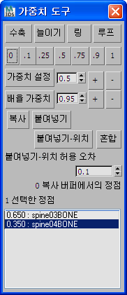 (가중치 도구)을 클릭합니다. 3ds Max에 가중치 도구 대화상자가 열립니다.
