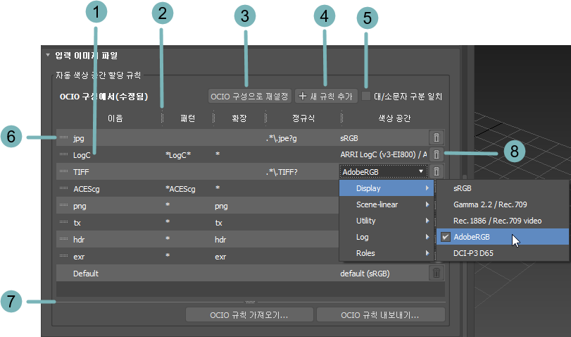 규칙이 변경될 때마다 색상 공간이 자동으로 설정된 기존 텍스처가 적절하게 다시 할당됩니다. 수동으로 설정된 색상 공간이 있는 텍스처는 변경되지 않습니다.
