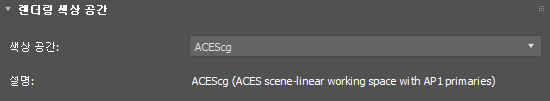 음영 처리 계산이 수행되는 색상 공간입니다. 색상 입력은 렌더링을 위해 이 공간으로 변환되고 렌더링된 이미지는 보기를 위해 이 공간에서 변환됩니다.