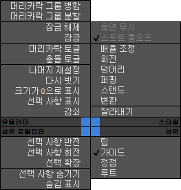 다음에서 처음 두 선택 항목은 머리카락 그룹의 버튼에 대한 단축키입니다.