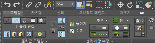1. 리본 다각형 모델링 패널에서 (소프트 선택)을 클릭하여 켭니다.