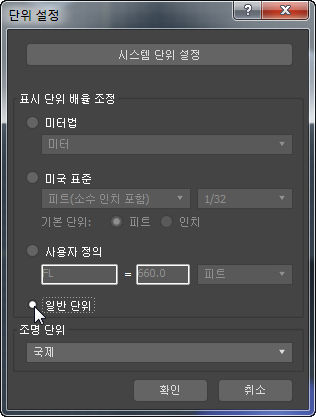 2. 사용자 정의 메뉴에서 단위 설정을 선택하고 단위 설정 대화상자 표시 단위 배율 조정 그룹에서 일반 단위가 선택되어 있는지 확인합니다.
